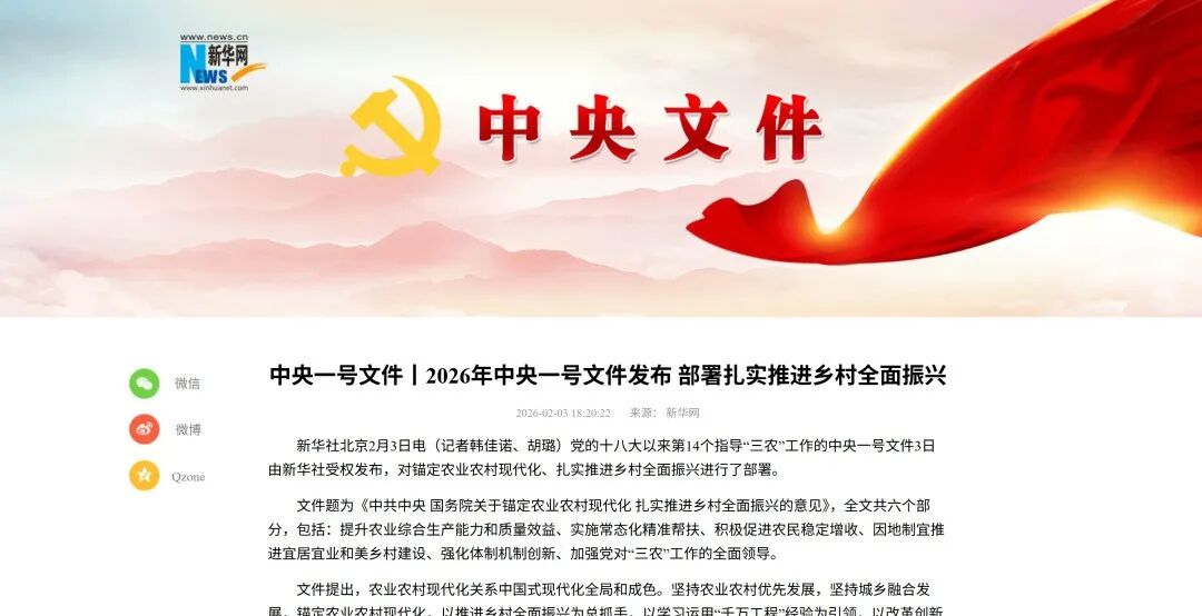 2026年2月3日,党的十八大以来第14个指导“三农”工作的中央一号文件正式发布,恰逢“十五五”开局之年,这份重磅文件为农业农村现代化划定清晰路径。其中,巩固肉牛产业纾困成果、强化食品安全监管、提升农业科技创新三大核心任务,叠加联动进口牛肉调控政策,直接决定2026年肉牛产业走向、牛肉价格走势,更关系千万养殖户、进口商、加工企业的全年盈利,干货密集,行业人士必看!