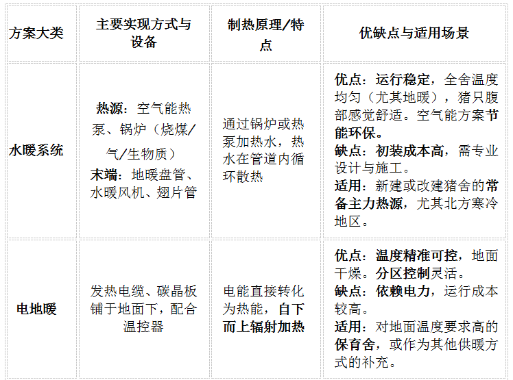 针对保育育肥舍的供暖,主要方案、核心差异及选择要点如下: