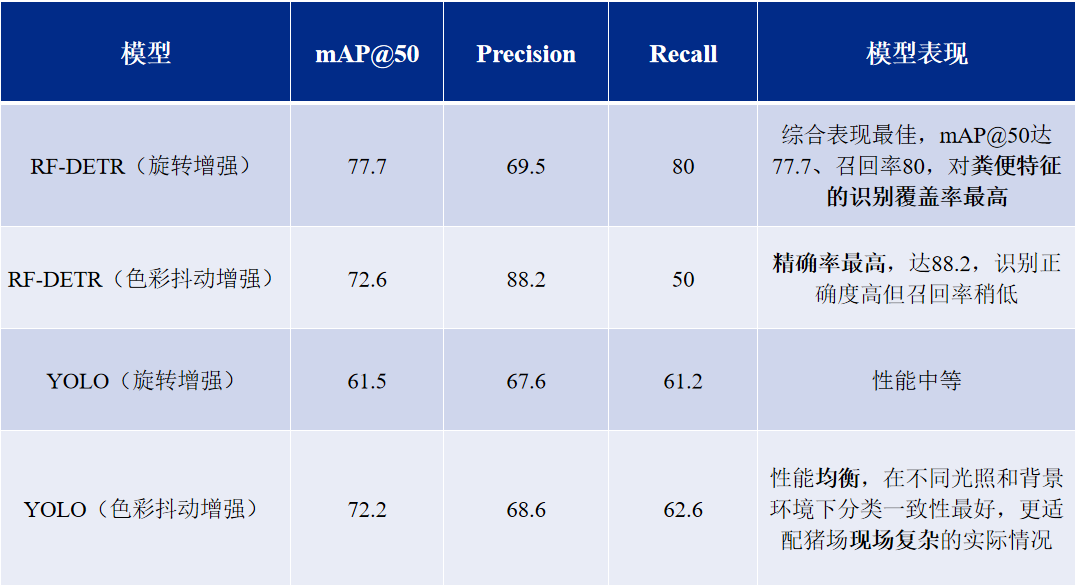 当然,这项研究仍处于试点阶段,目前存在数据集规模较小的局限性,后续扩大数据集、纳入更多猪场环境和病原特异性腹泻特征后,模型的通用性和诊断价值还将进一步提升。