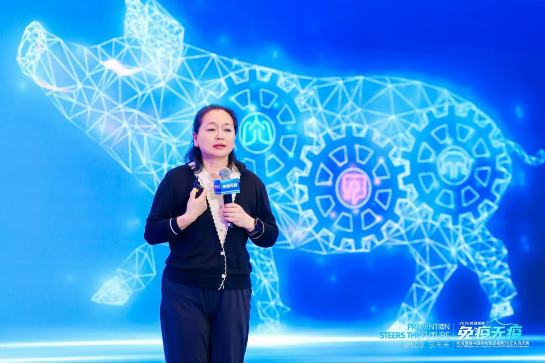 谢子贺博士回顾了圆福莱从研发到全球销量突破50亿头份的历程,强调这一数字不仅是商业成就,更是对全球猪群健康的守护里程碑。20年前圆环病毒危害严重但行业对它认知不足,面对巨大挑战,勃林格殷格翰凭借蓝耳病领域的积累,2006年率先研发并上市采用杆状病毒表达PCV2亚单位疫苗圆福莱,如今已在超过70个国家上市,实践证明其对多个PCV2亚型具有交叉保护力,能显著提升猪群均匀度与日增重,从而带来利润的巨大变化。除产品性能卓越外,圆福莱还获得了德国TUV认证,每100头肥猪可减少5%碳排放与2%的用水量,以支持可持续发展与动物福利。谢博士表示,圆福莱50亿头份的达成,代表着全球范围内,为生猪健康带来50亿次守护、信心和承诺,它不仅仅是数字,更是一段以信任、伙伴关系共同成功铸就的征程。